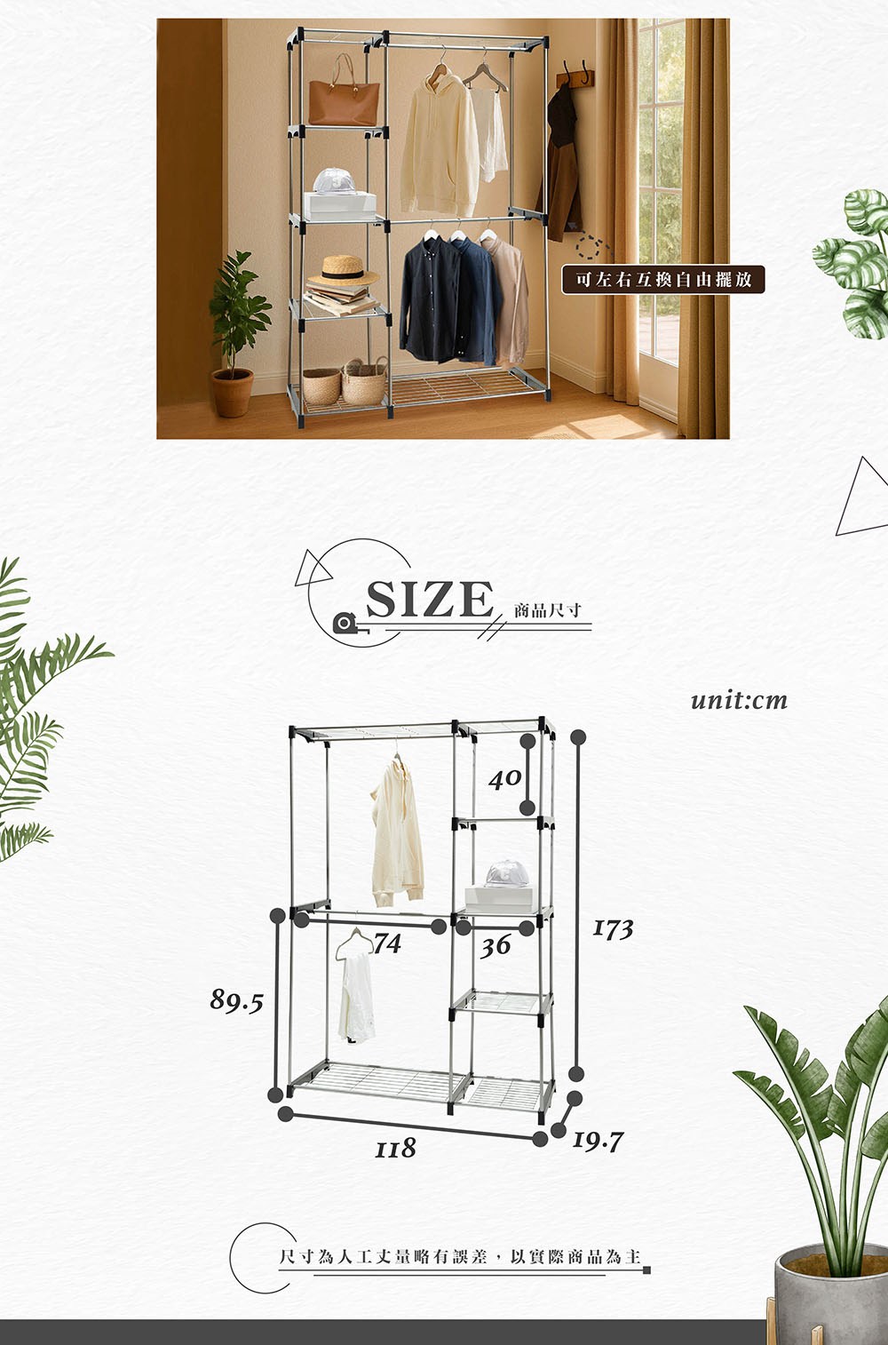 【客尊屋】小資型45X90X180Hcm 高耐重三層單衣桿衣櫥