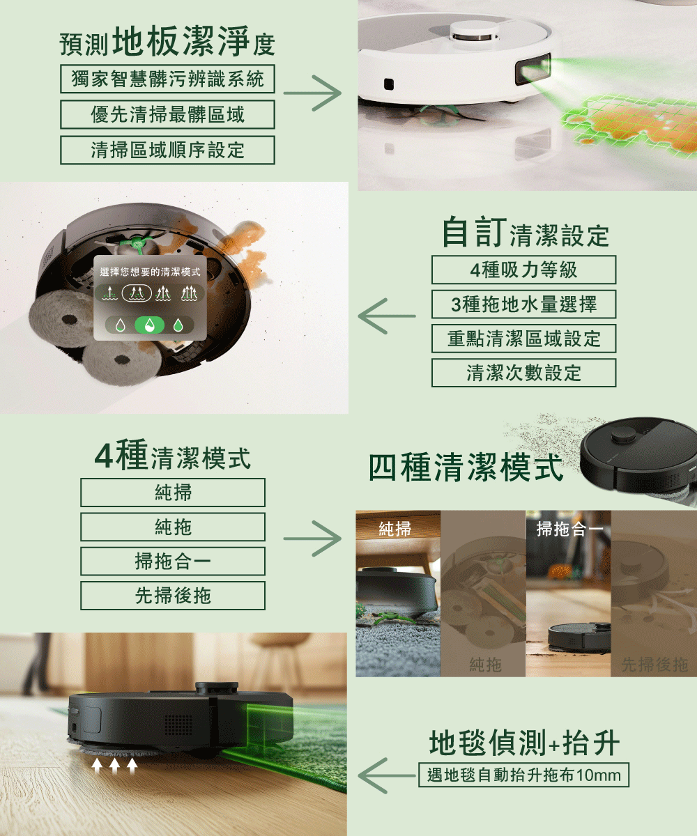 ★注意:使用掃拖與純拖功能必須注意地板濕度避免滑倒意外