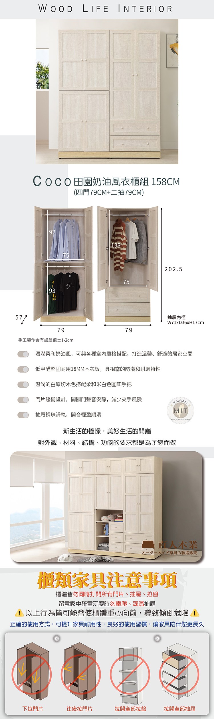 直人木業-雲白淺榆木滑門衣櫃組150公分(雙吊+三抽)