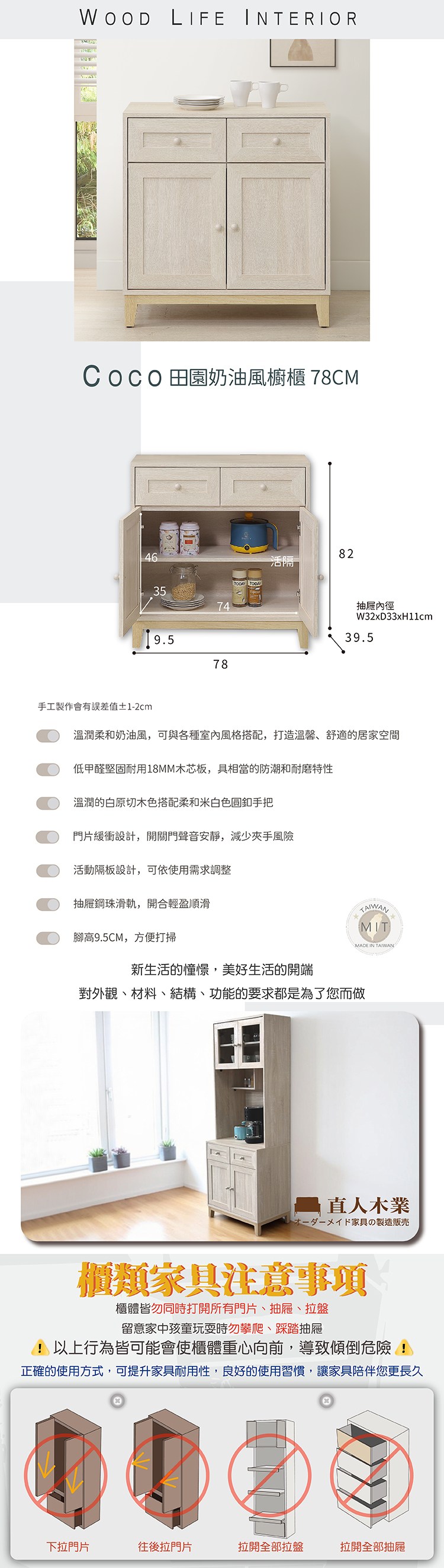 直人木業-COCO田園奶油風櫥櫃78公分