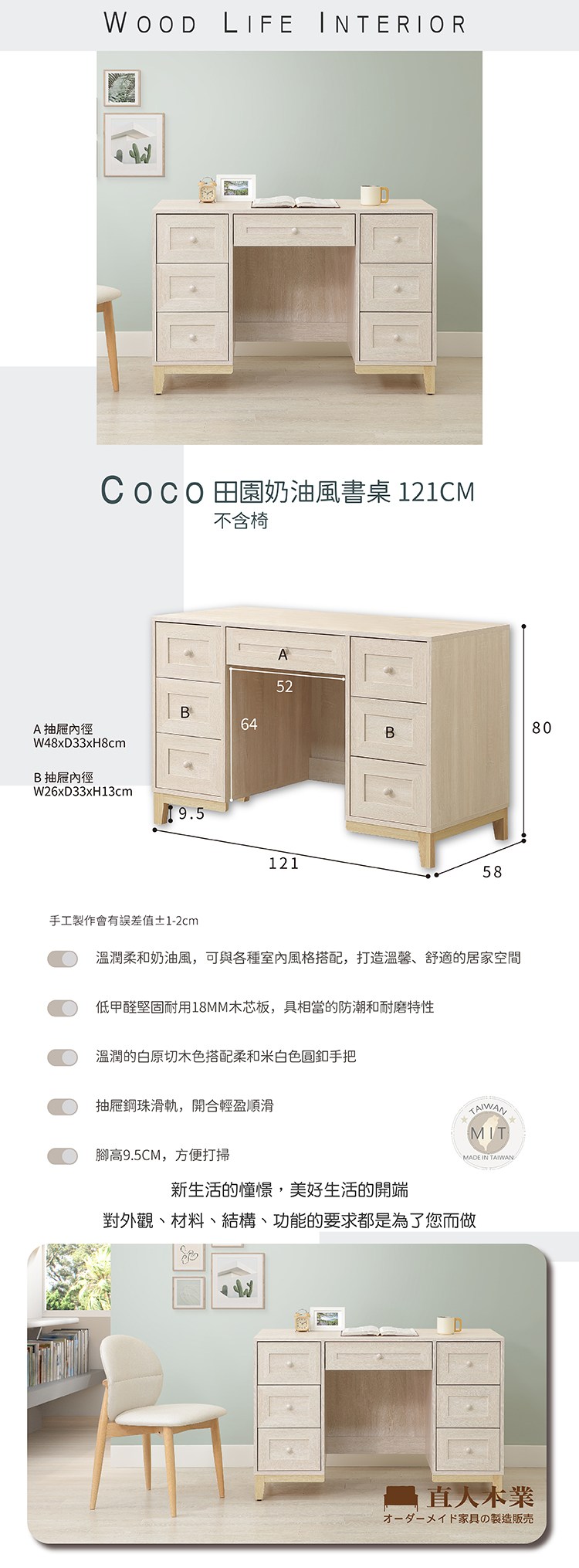 直人木業-COCO田園奶油風書桌121公分(不含椅)