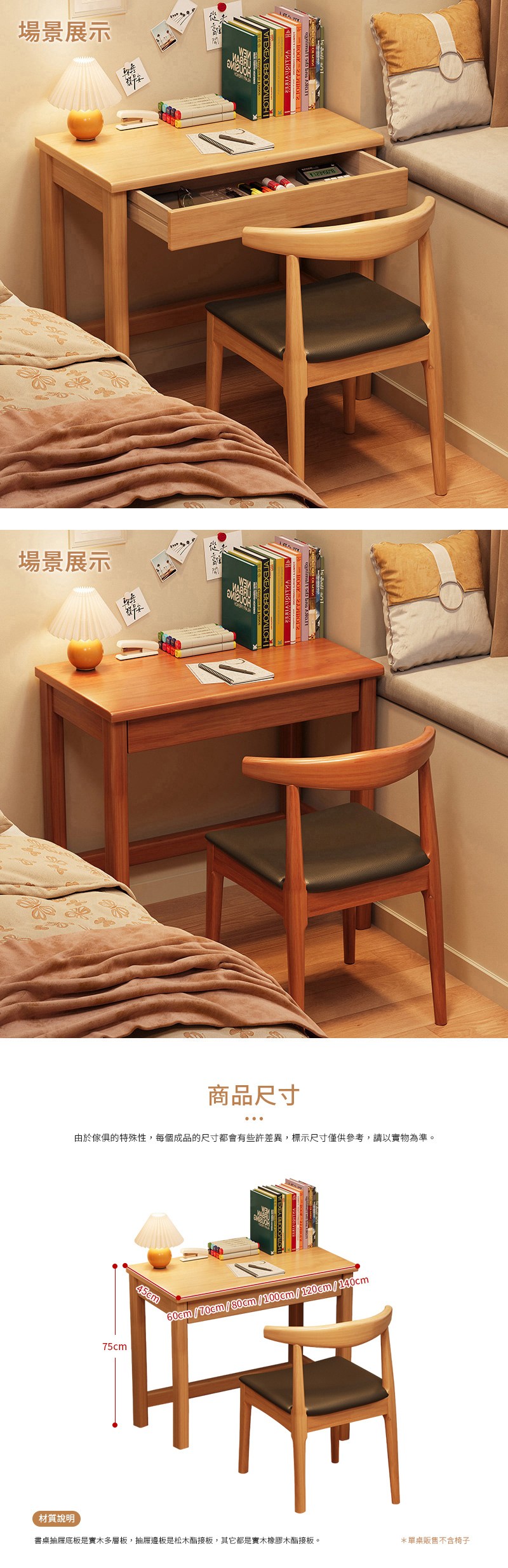 書桌 實木桌腿 15MM桌面 80×50×75CM 電腦桌 工作桌 電競桌 辦公桌 學習桌 書桌 寫字桌