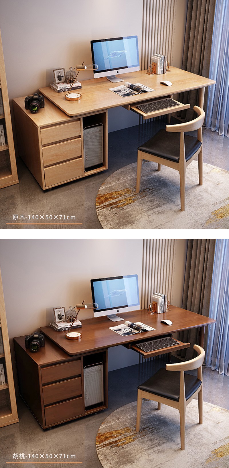 【HappyLife】實木輕奢簡約帶櫃書桌 140公分 Y11835胡桃