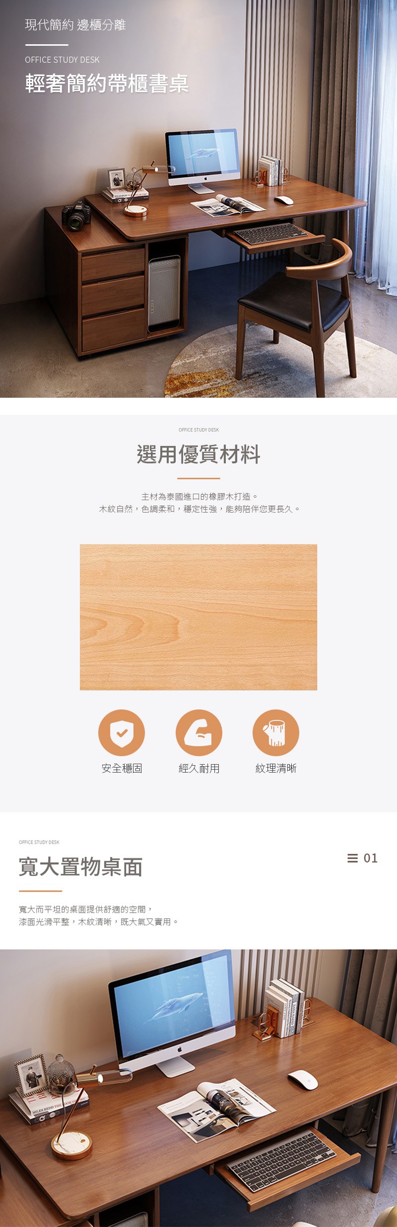 【HappyLife】實木輕奢簡約帶櫃書桌 120公分 Y11834原木