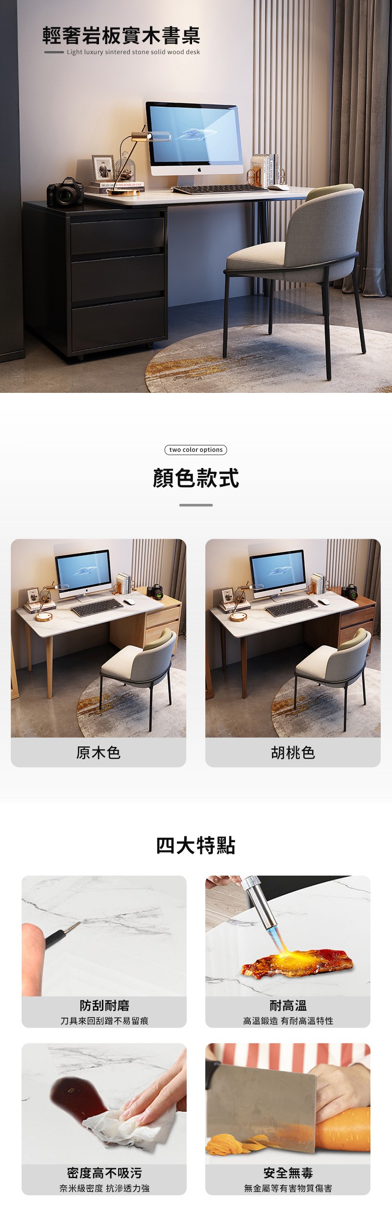 【HappyLife】岩板實木書桌 附收納斗櫃 120公分 Y11839胡桃