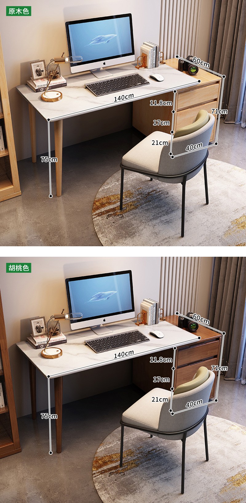 【HappyLife】岩板實木書桌 附收納斗櫃 140公分 Y11840胡桃