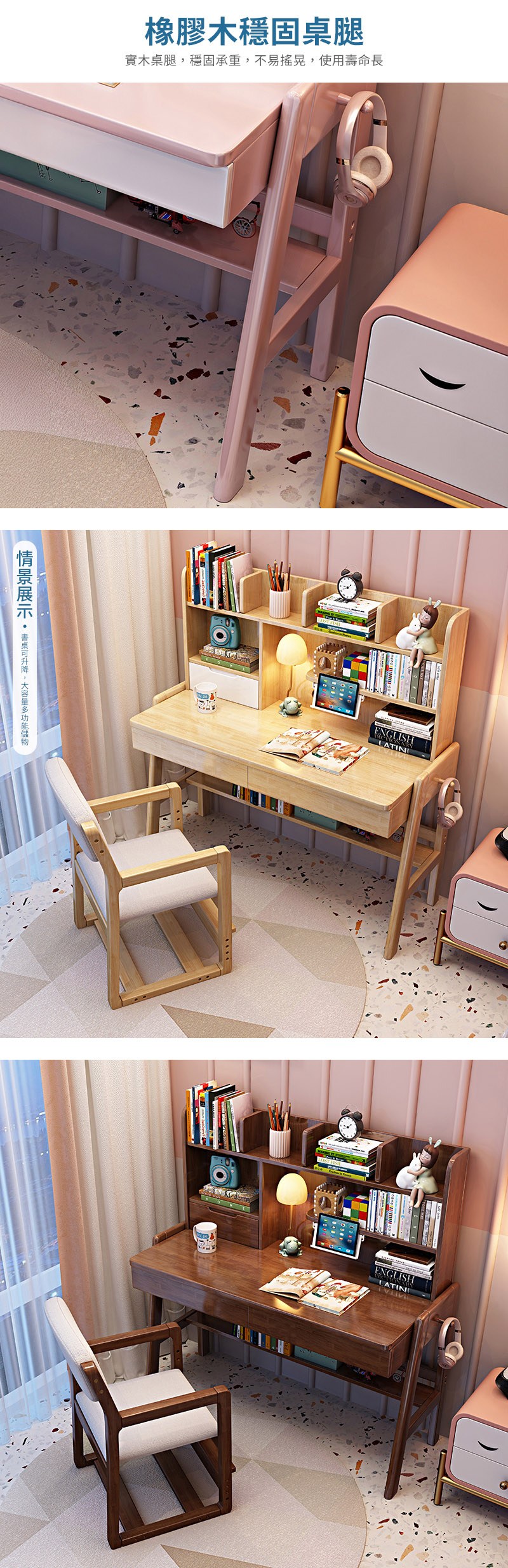 【HappyLife】實木升降書架書桌 100公分 Y12146粉白