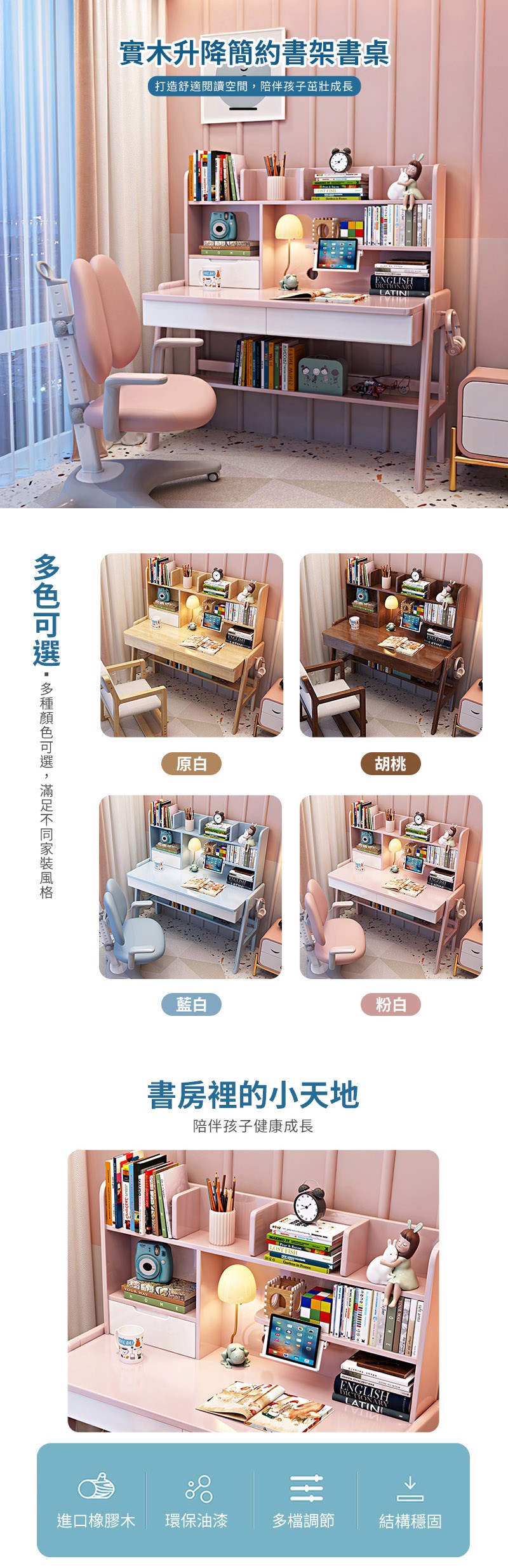 【HappyLife】實木升降簡約書架書桌 80公分 Y12066粉白