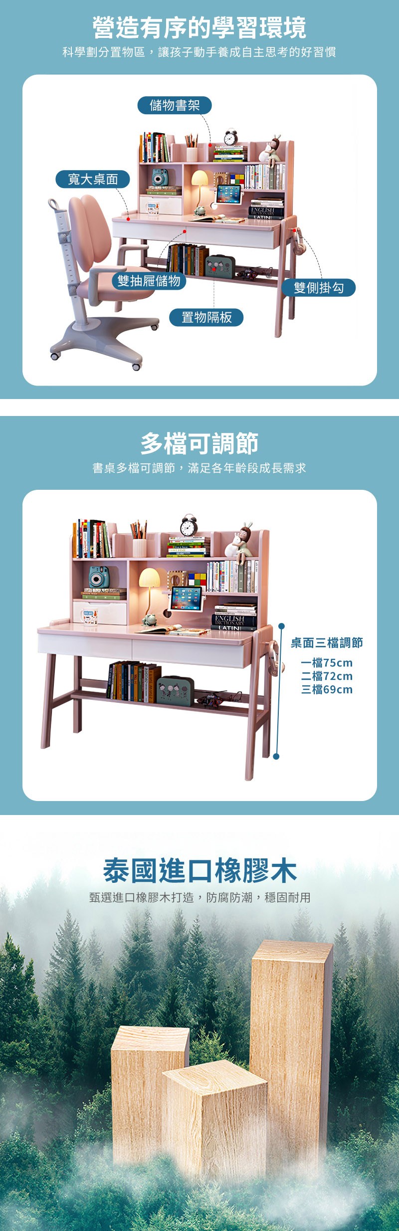 【HappyLife】實木升降書架書桌 100公分 Y12146粉白