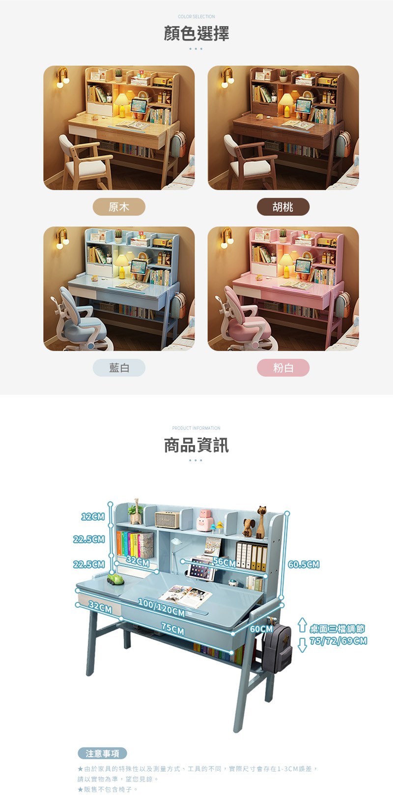 【HappyLife】實木升降書架書桌 100公分 Y12146藍白