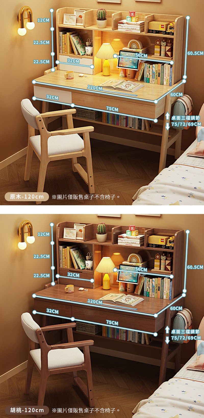 【HappyLife】實木升降雙層書架書桌 80公分 Y12060胡桃