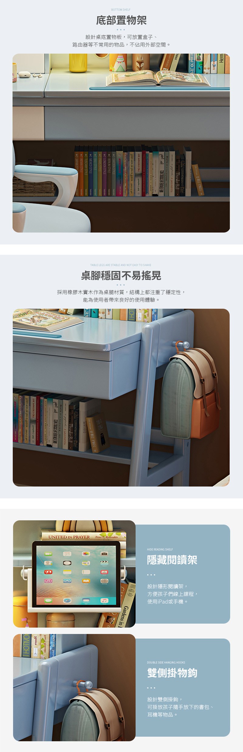 【HappyLife】實木閱讀架升降書桌 100公分 Y12148藍白