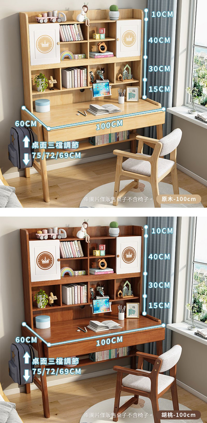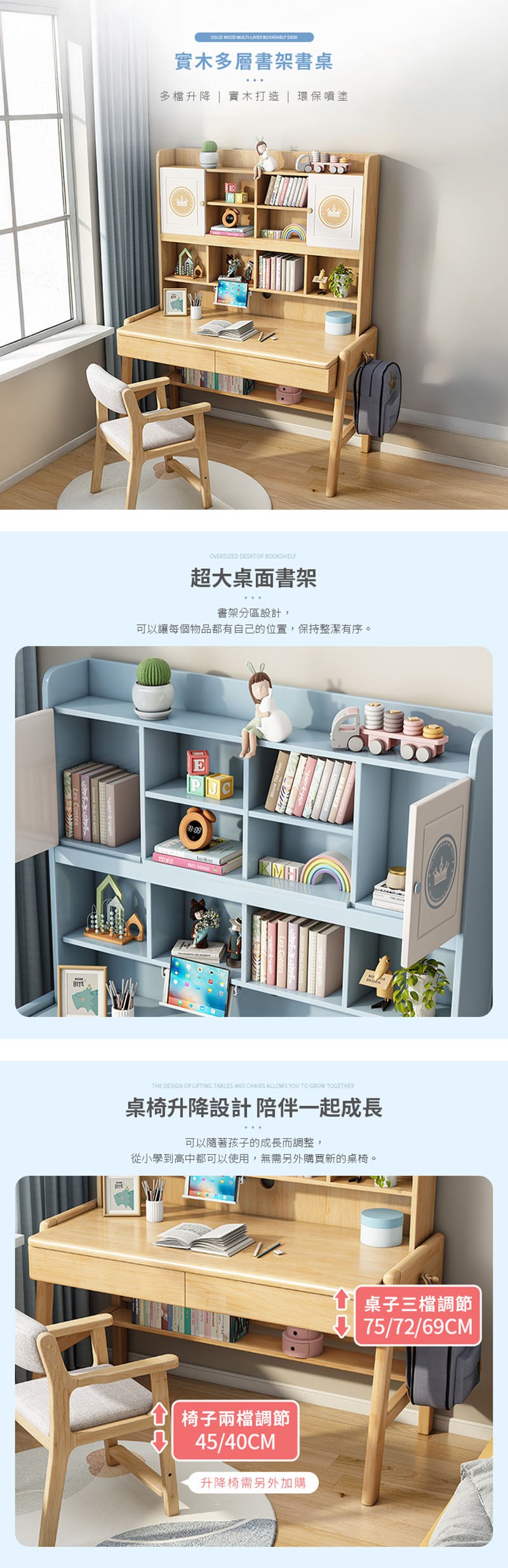 【HappyLife】實木升降書架書桌 100公分 Y12146藍白