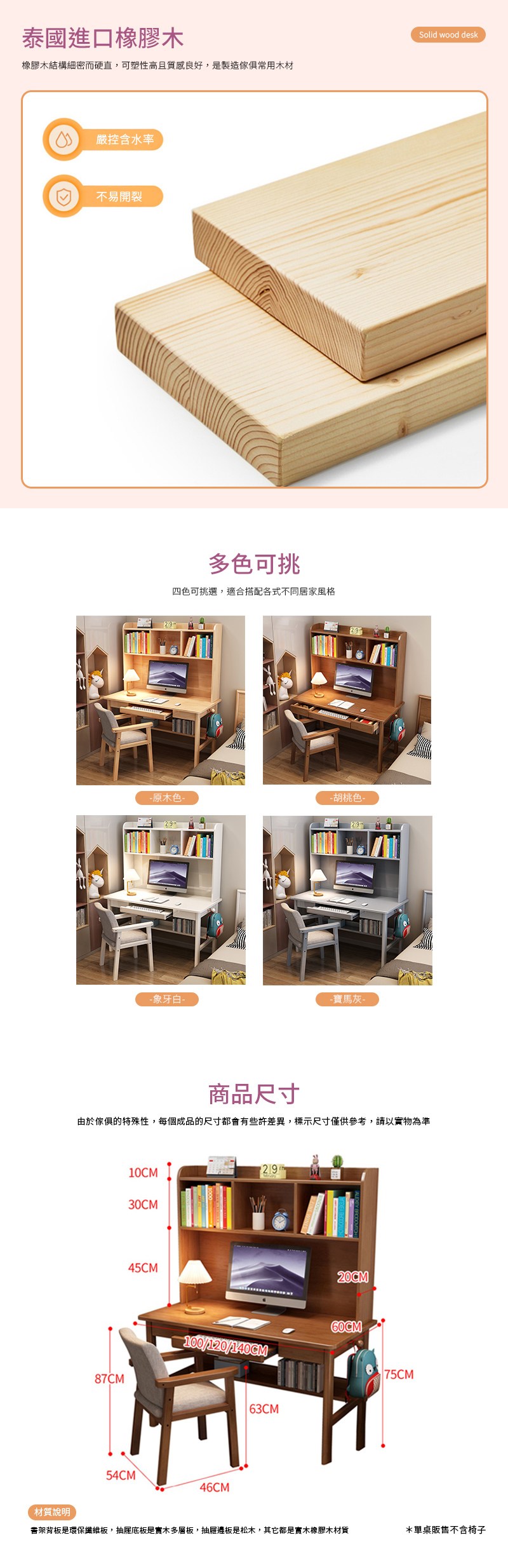 【HappyLife】實木加高書架中式書桌 100公分 Y12080胡桃