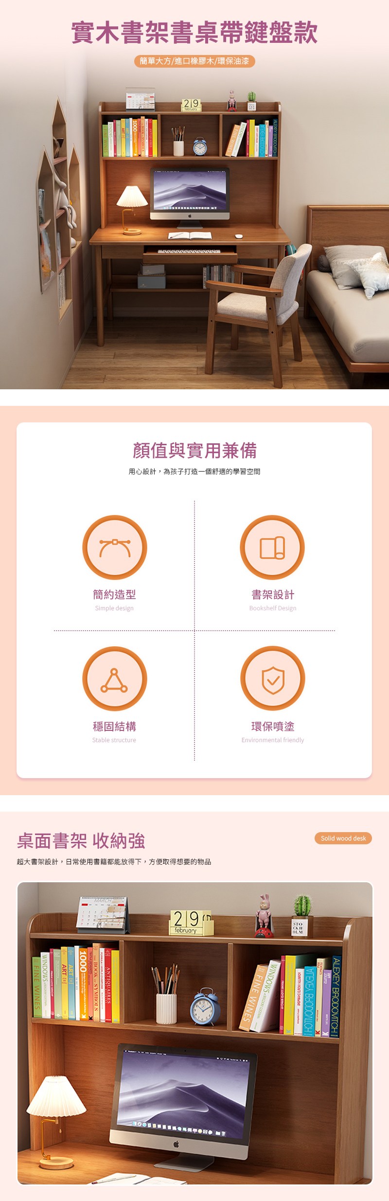 優樂悅~電腦桌臺式臥室書桌學生家用書桌書架一體桌簡易學習桌椅寫字桌子