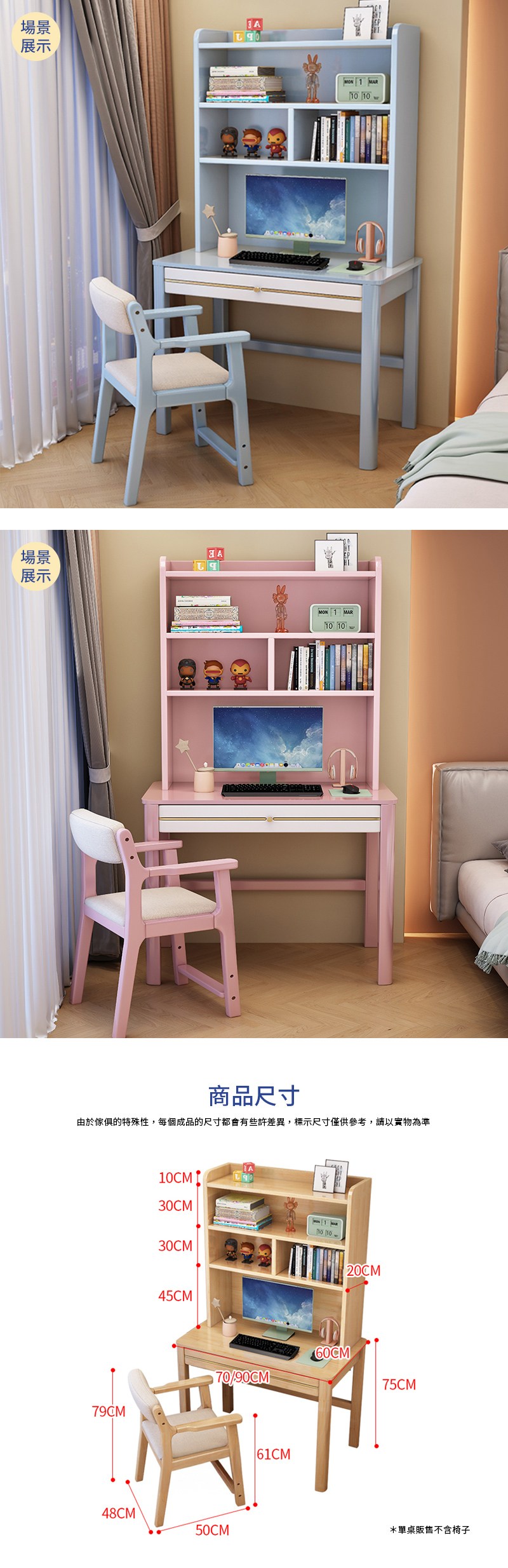 【HappyLife】實木加高書架書桌 70公分 Y12078藍白