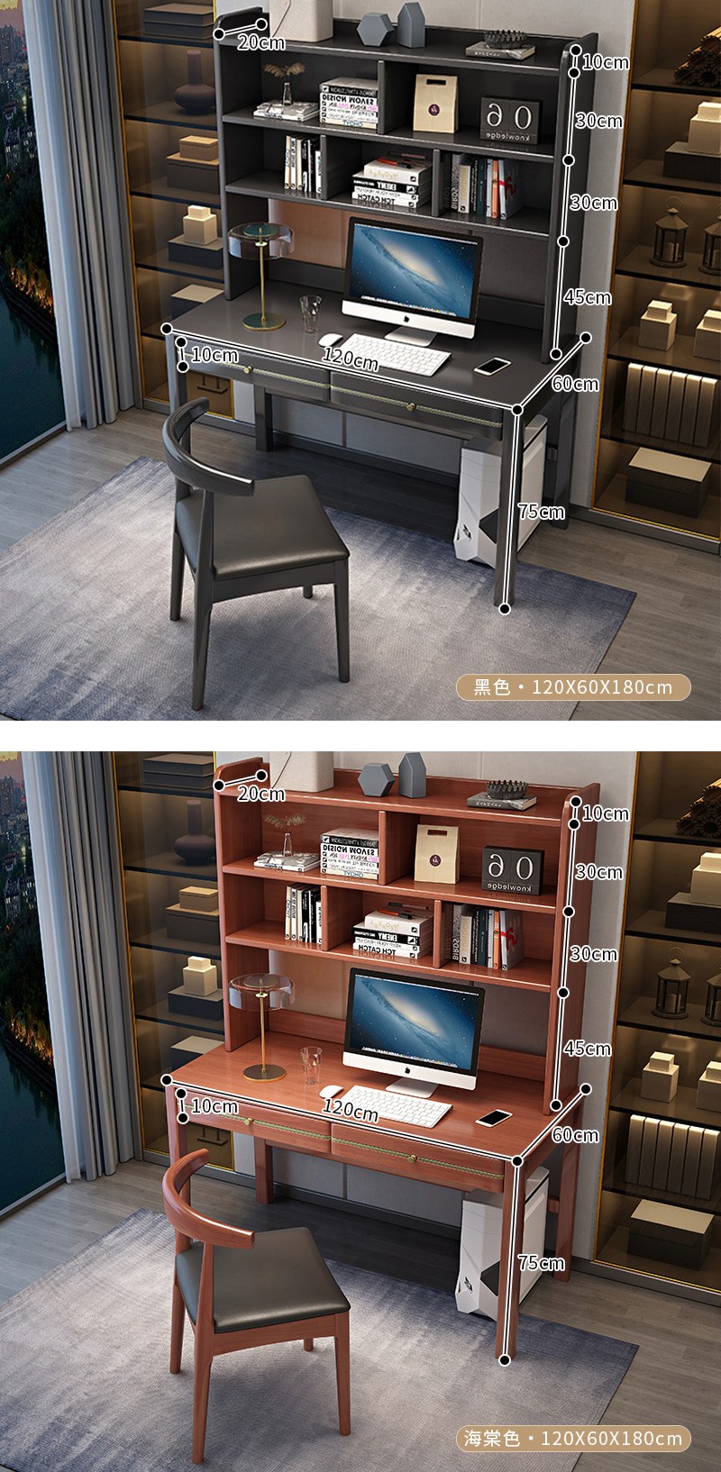【HappyLife】實木加高書架中式書桌 120公分 Y12081黑