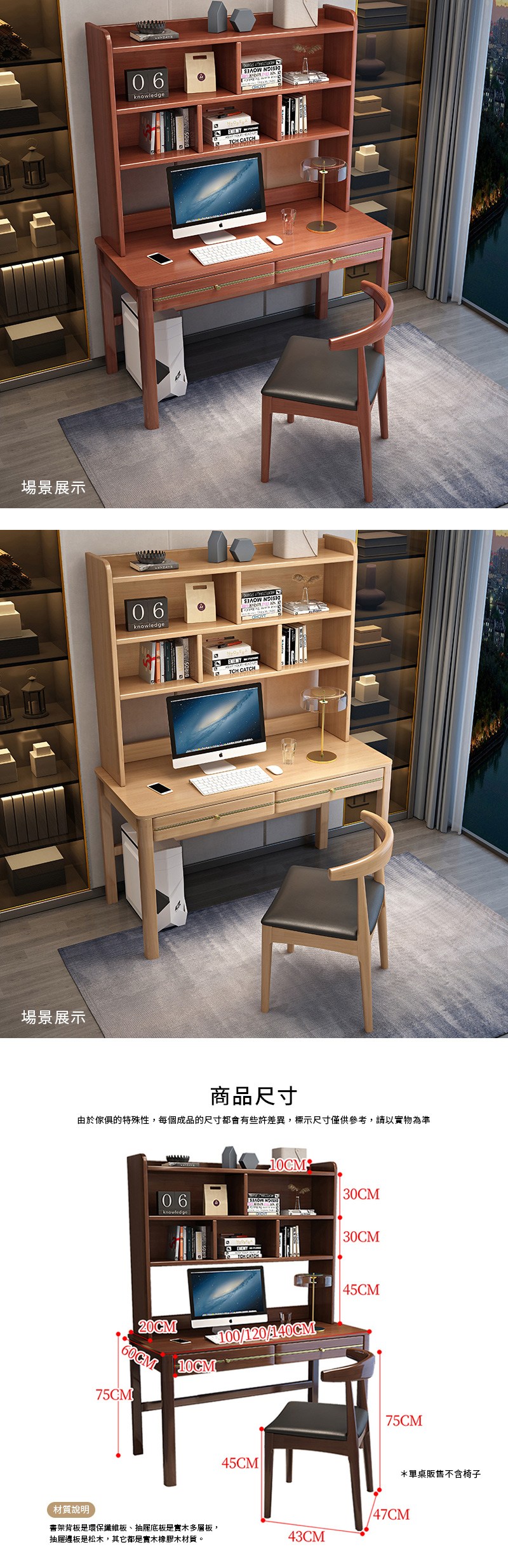 【HappyLife】實木加高書架中式書桌 100公分 Y12080胡桃