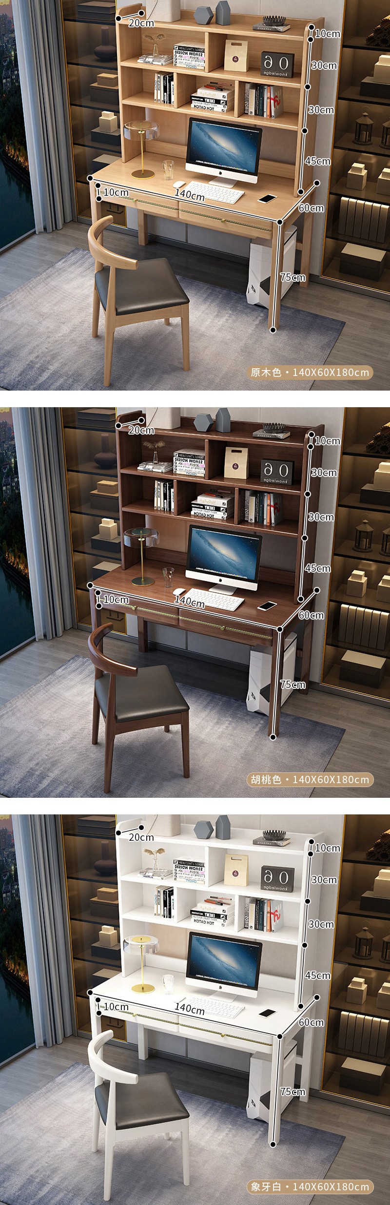 兒童學習桌女孩臥室家用現代簡約書桌書架一體桌小戶型寫字桌椅