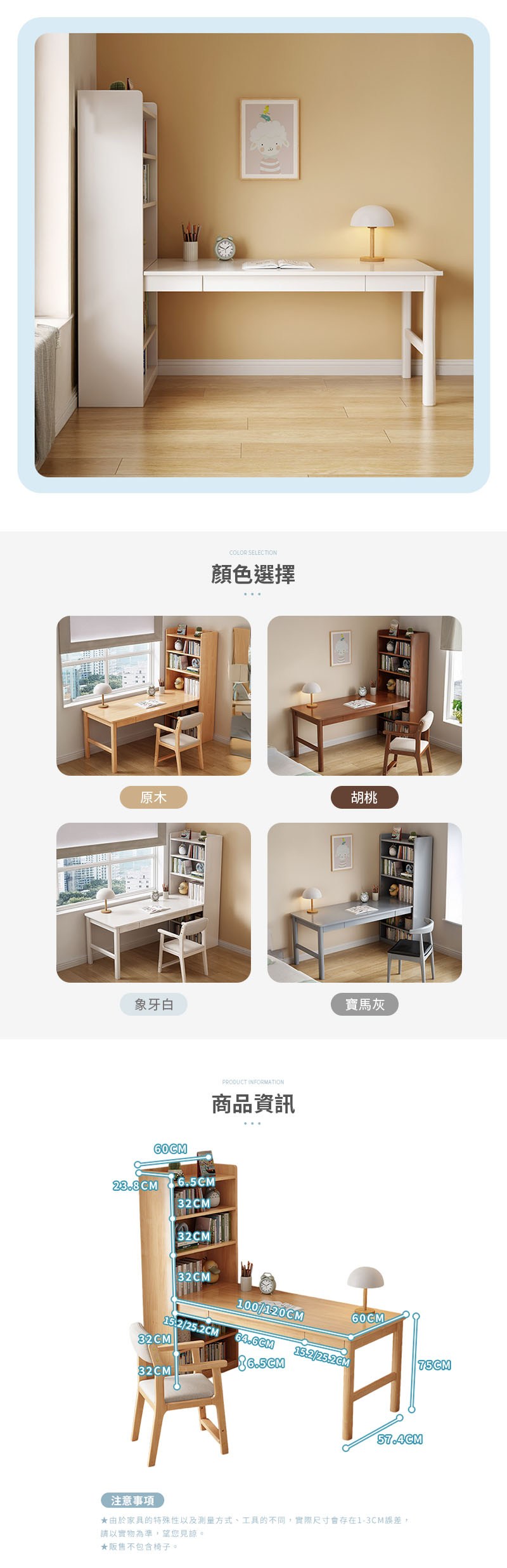 點我下載【HappyLife】實木連櫃書桌桌 120公分 Y12091象牙白