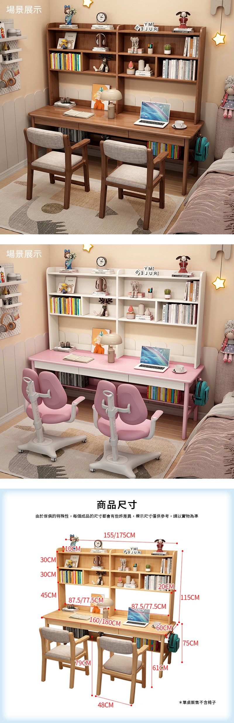 【HappyLife】實木雙人書架書桌 160公分 Y12096粉白