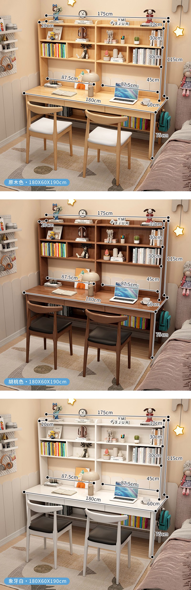 點我下載【HappyLife】實木雙人書架書桌 180公分 Y12095寶馬灰