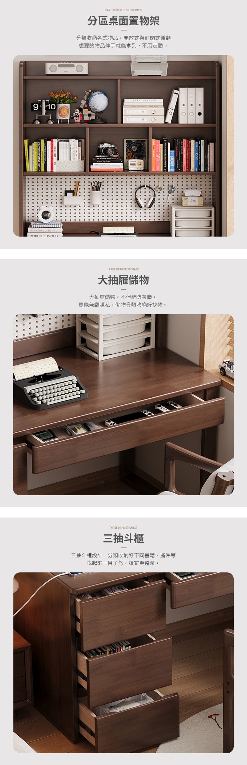 【HappyLife】實木洞洞板帶櫃書桌 140公分 Y12123黑胡桃