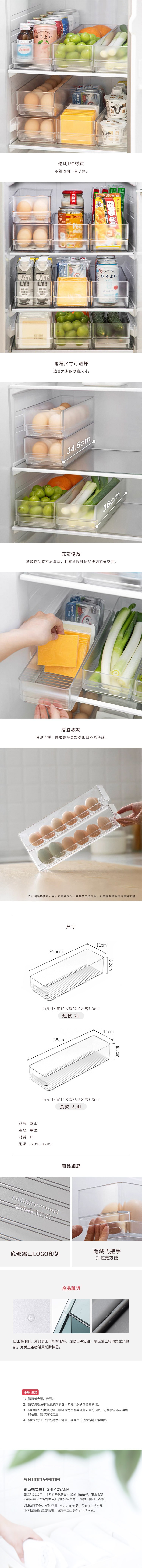 SHIMOYAMA 可層疊冰箱食材收納盒 2.4L 透明色 1個 380 x 110 x 82mm