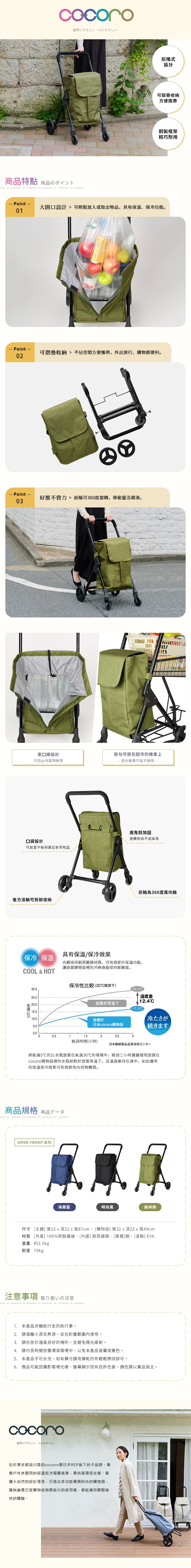點我下載【日本cocoro】OPEN FRONT 前推式保溫保冷四輪摺疊購物車-35L-多色可選-時尚黑