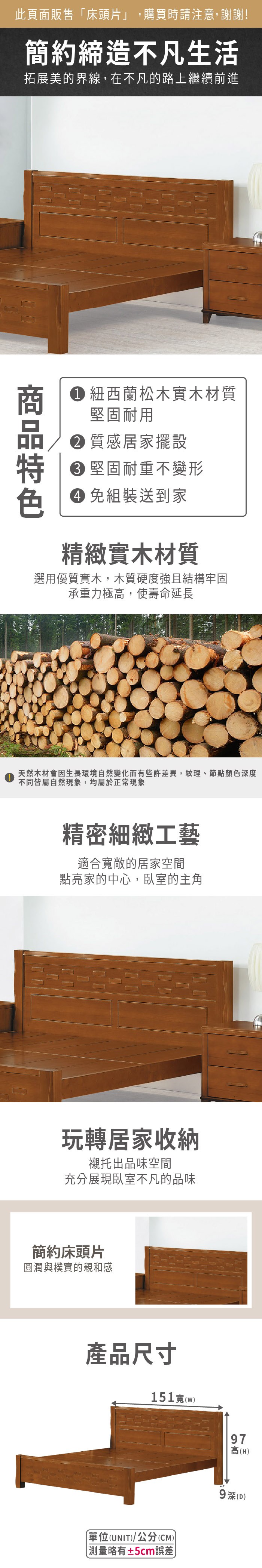 ASSARI-鑽石實木床頭片(雙人5尺)