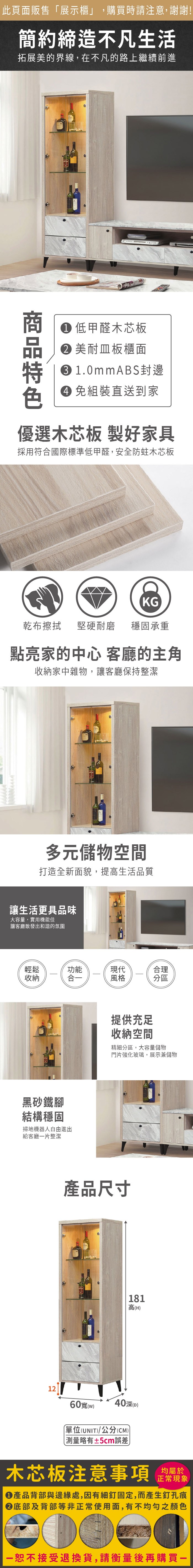 WAKUHOME 瓦酷家具 Frances時尚大理石紋展示櫃 寬60X深40X高134(公分)