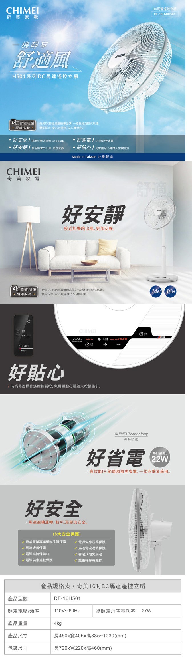 奇美家電 CHIMEI DC節能 18吋遙控立扇 DF-18H501 節能省電、多段風速、無線遙控