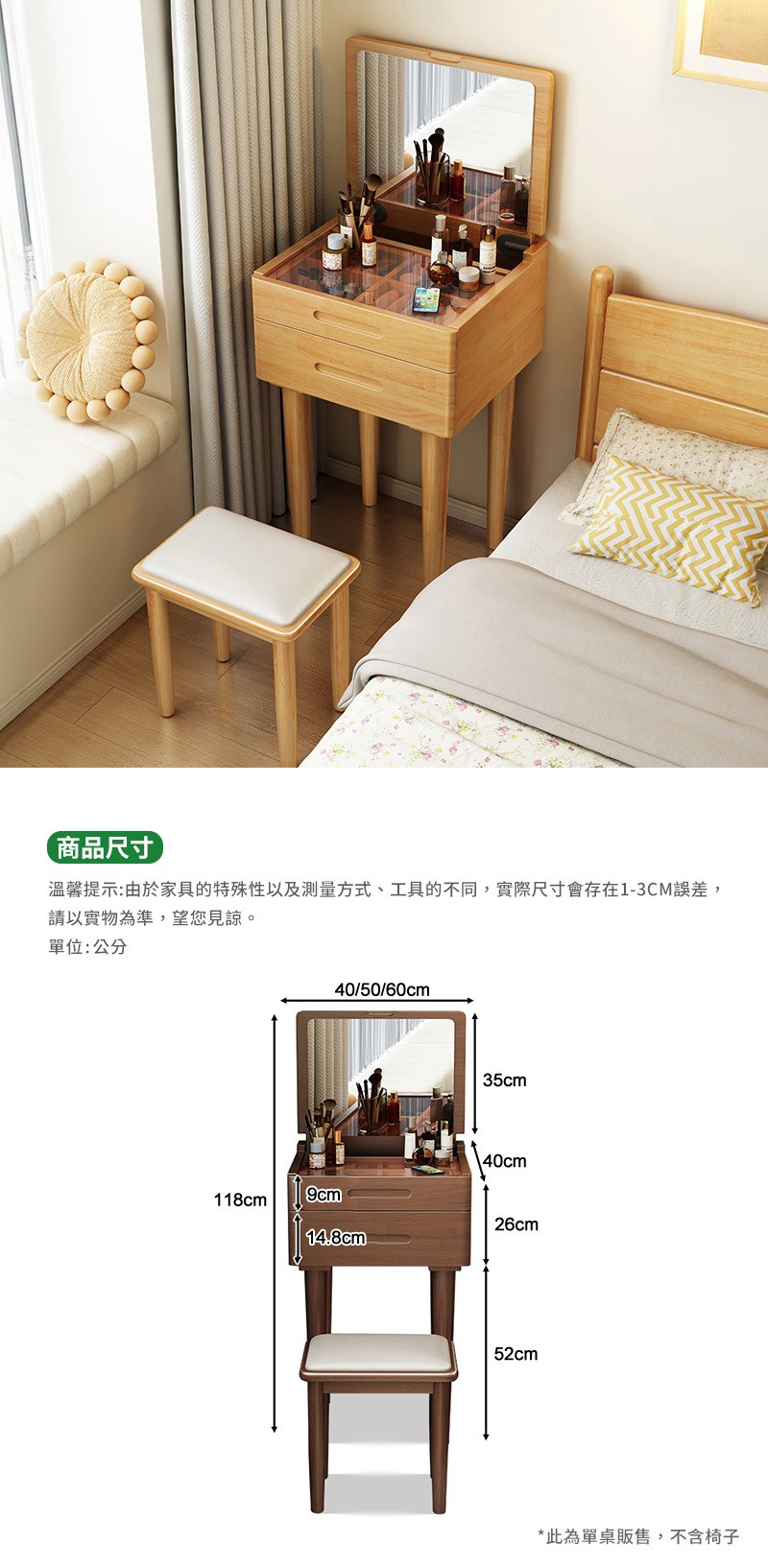 LED燈梳妆臺 尺寸80x39.8x38厘米 原木