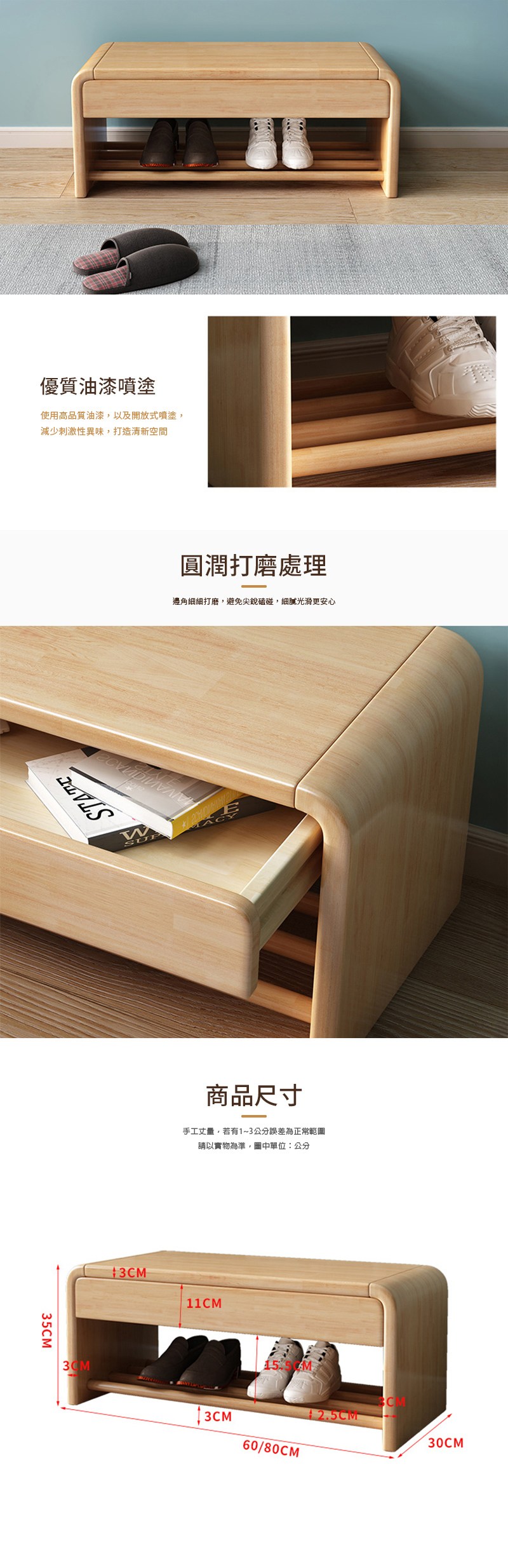 【HappyLife】北歐實木換鞋凳 附抽屜 60公分 Y11860原木