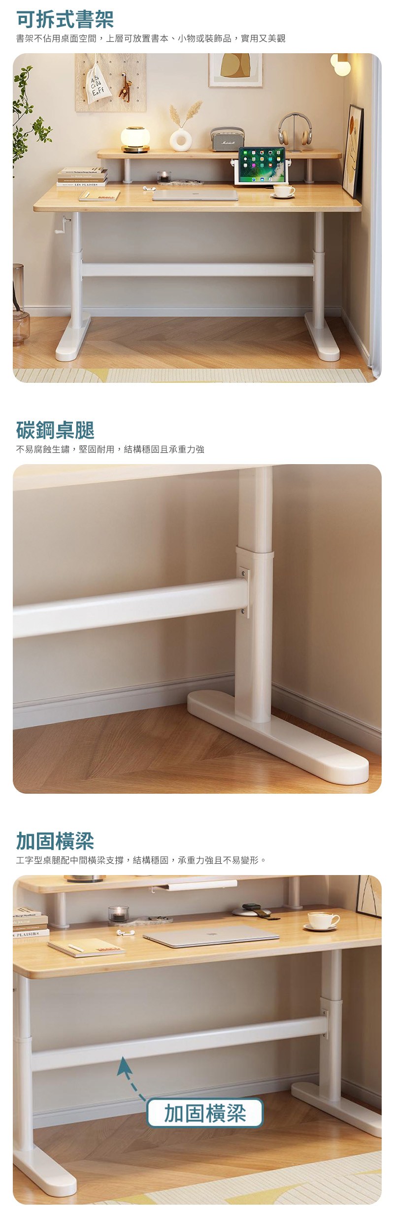 【HappyLife】實木碳鋼升降桌 附書架 140公分 Y11873白