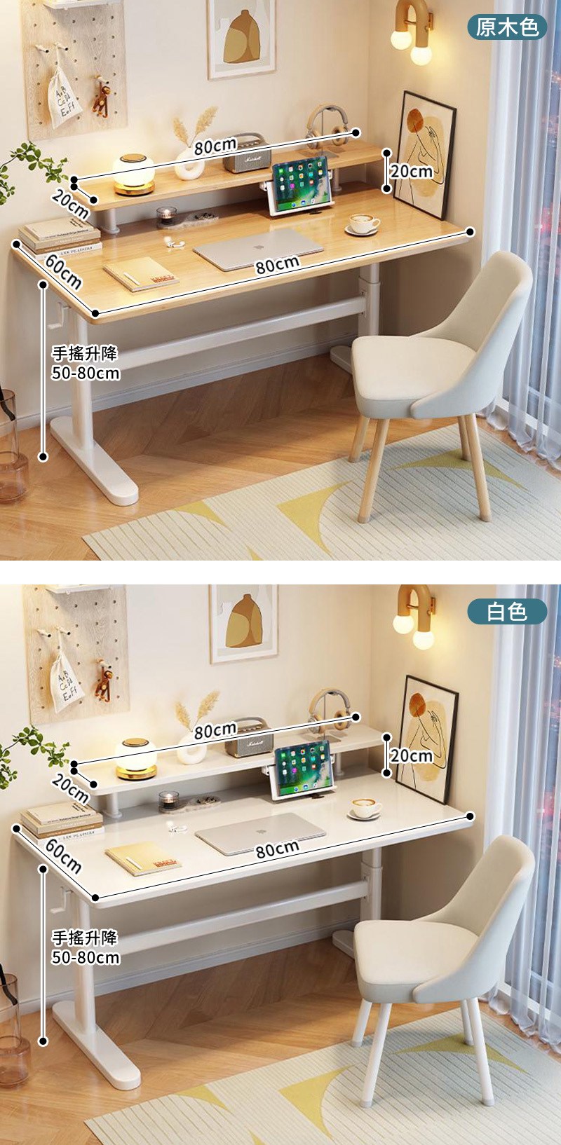【HappyLife】實木碳鋼升降桌 附書架 80公分 Y11870原木