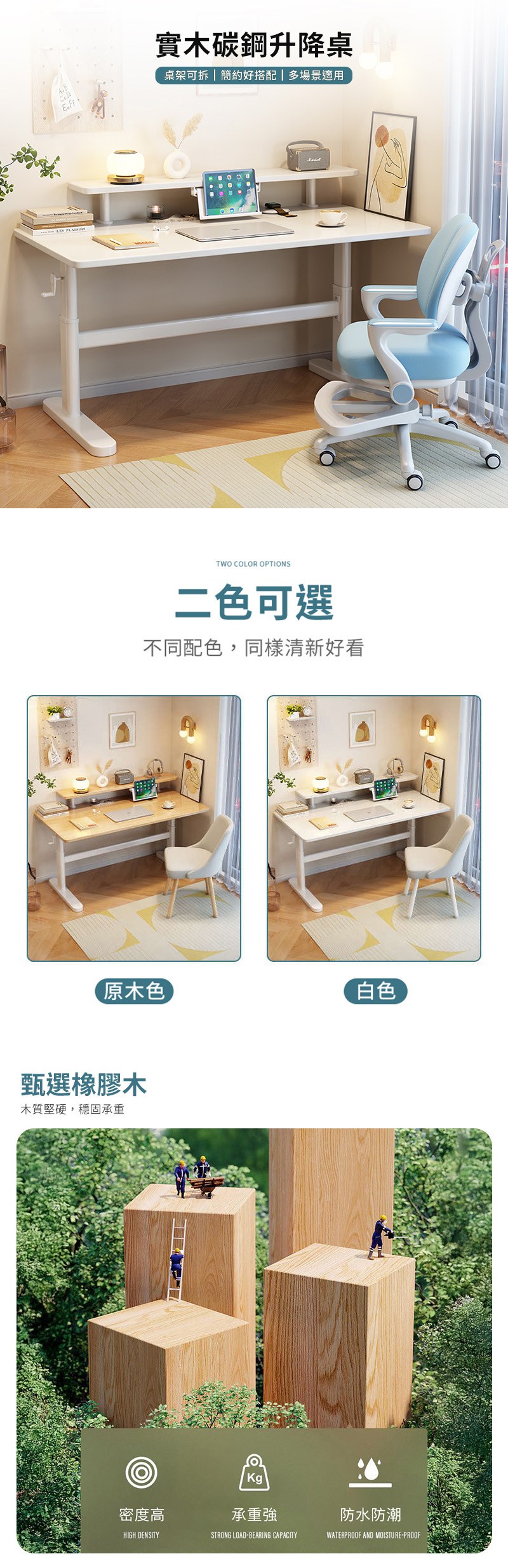 【HappyLife】實木碳鋼升降桌 附書架 80公分 Y11870原木