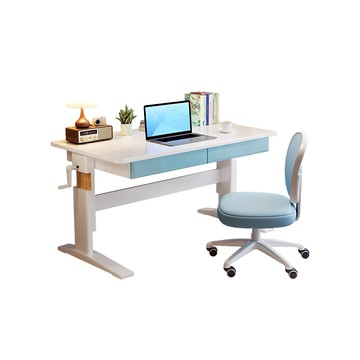 點我下載【HappyLife】實木手搖升降桌 附抽屜80公分 Y11874藍白