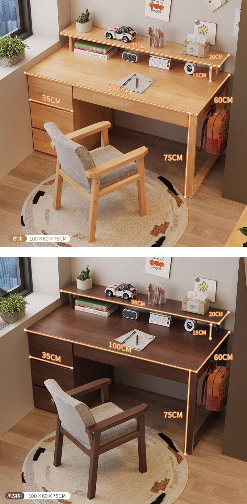 【HappyLife】實木書櫃書桌 附書架 100公分 Y11880原木