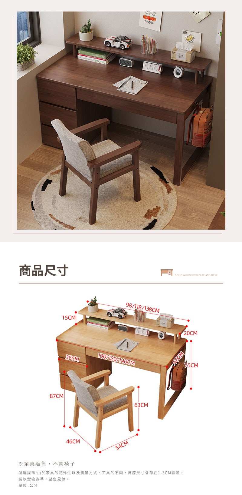 【HappyLife】實木書櫃書桌 附書架 100公分 Y11880原木