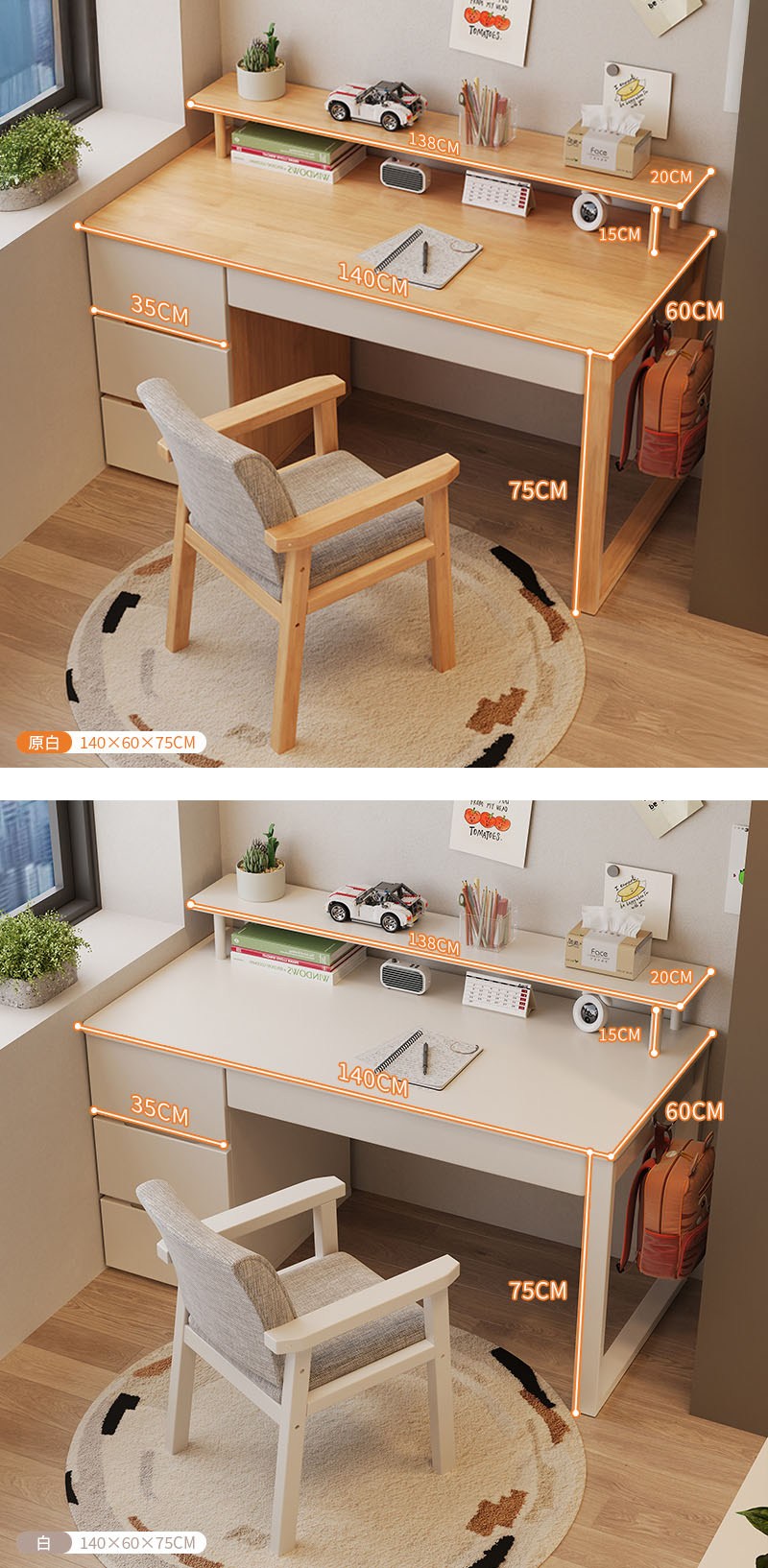 點我下載【HappyLife】實木書櫃書桌 附書架 140公分 Y11882白