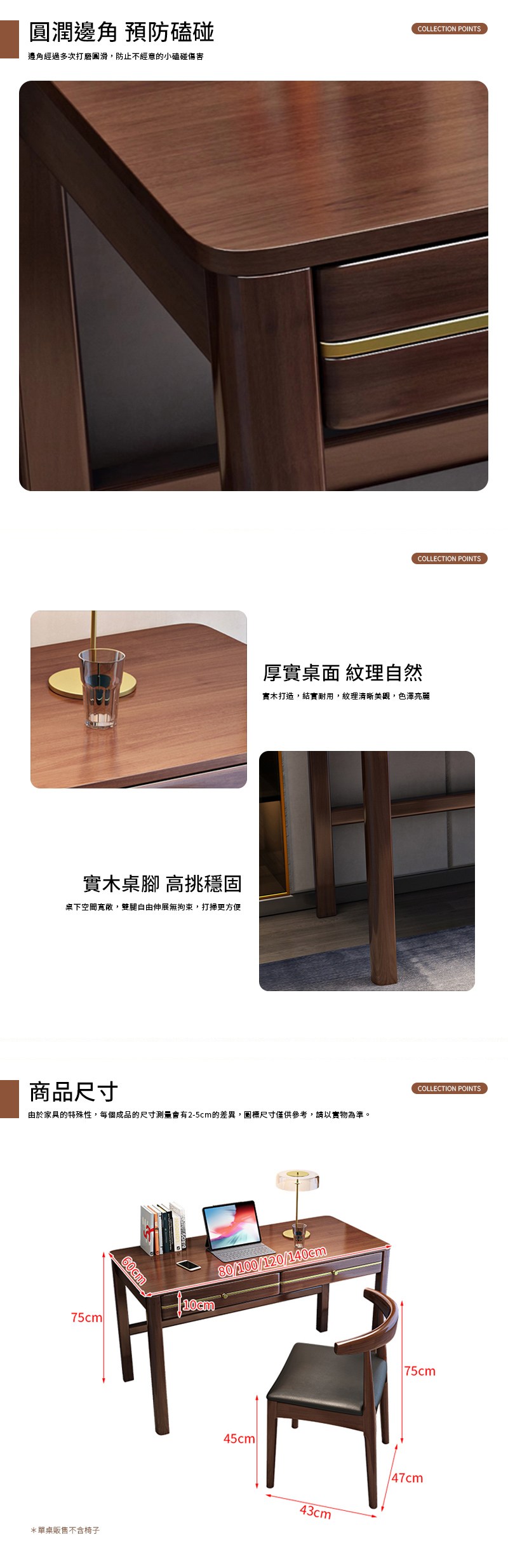 HappyLife 全實木抽屜櫃書桌 100x60x75cmY11110