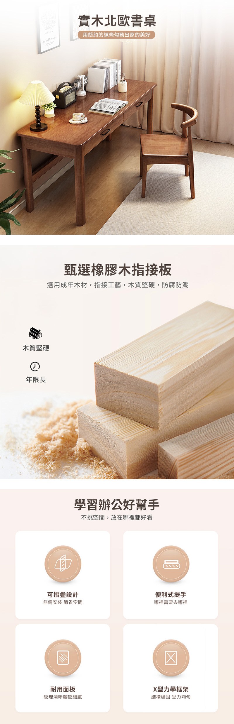 【HappyLife】實木北歐書桌 80公分 Y11893原木
