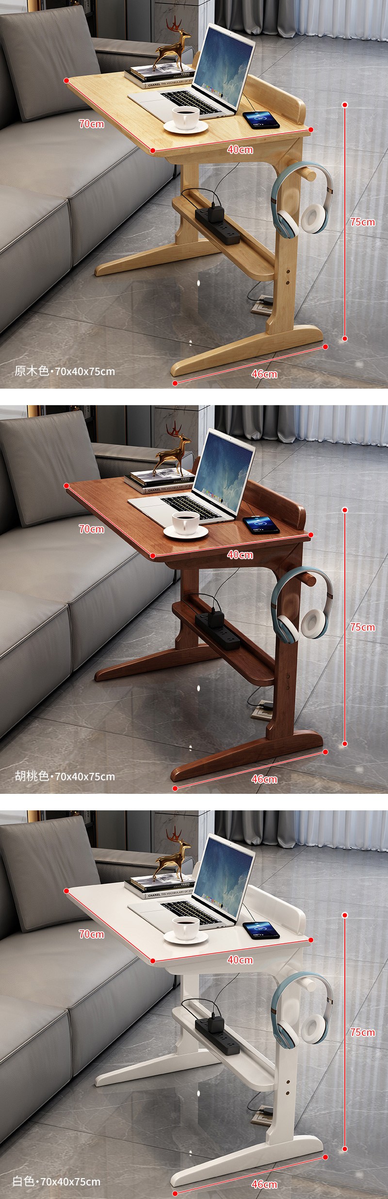 MGSHOP 多功能升降桌 側邊桌 床邊桌 抽屜床邊桌(手搖升降桌 80x40cm)