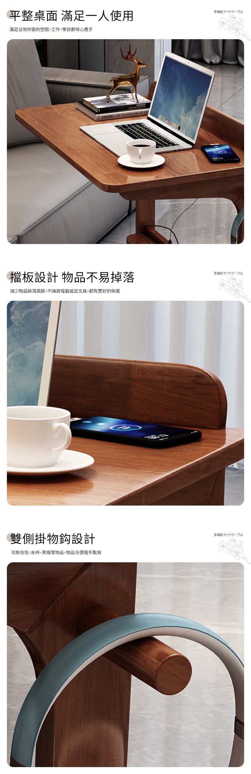 【AOTTO】2入組-床邊沙發可升降附輪邊桌-60CM