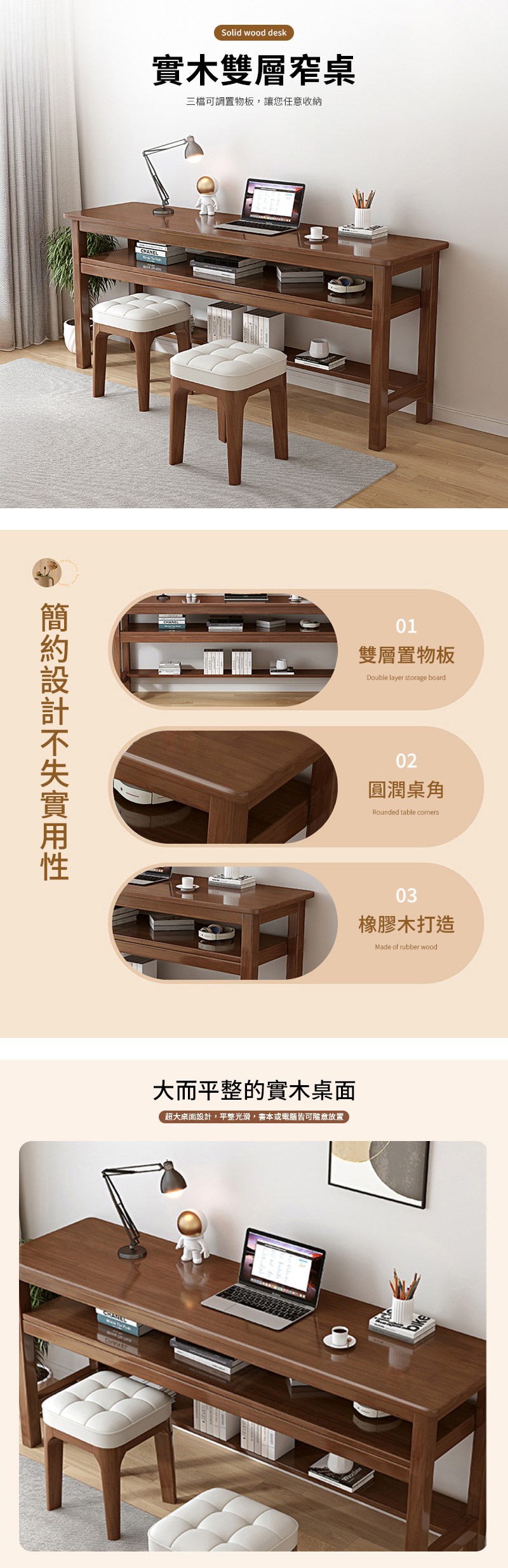 【HappyLife】實木雙層窄桌 140公分 Y11908胡桃