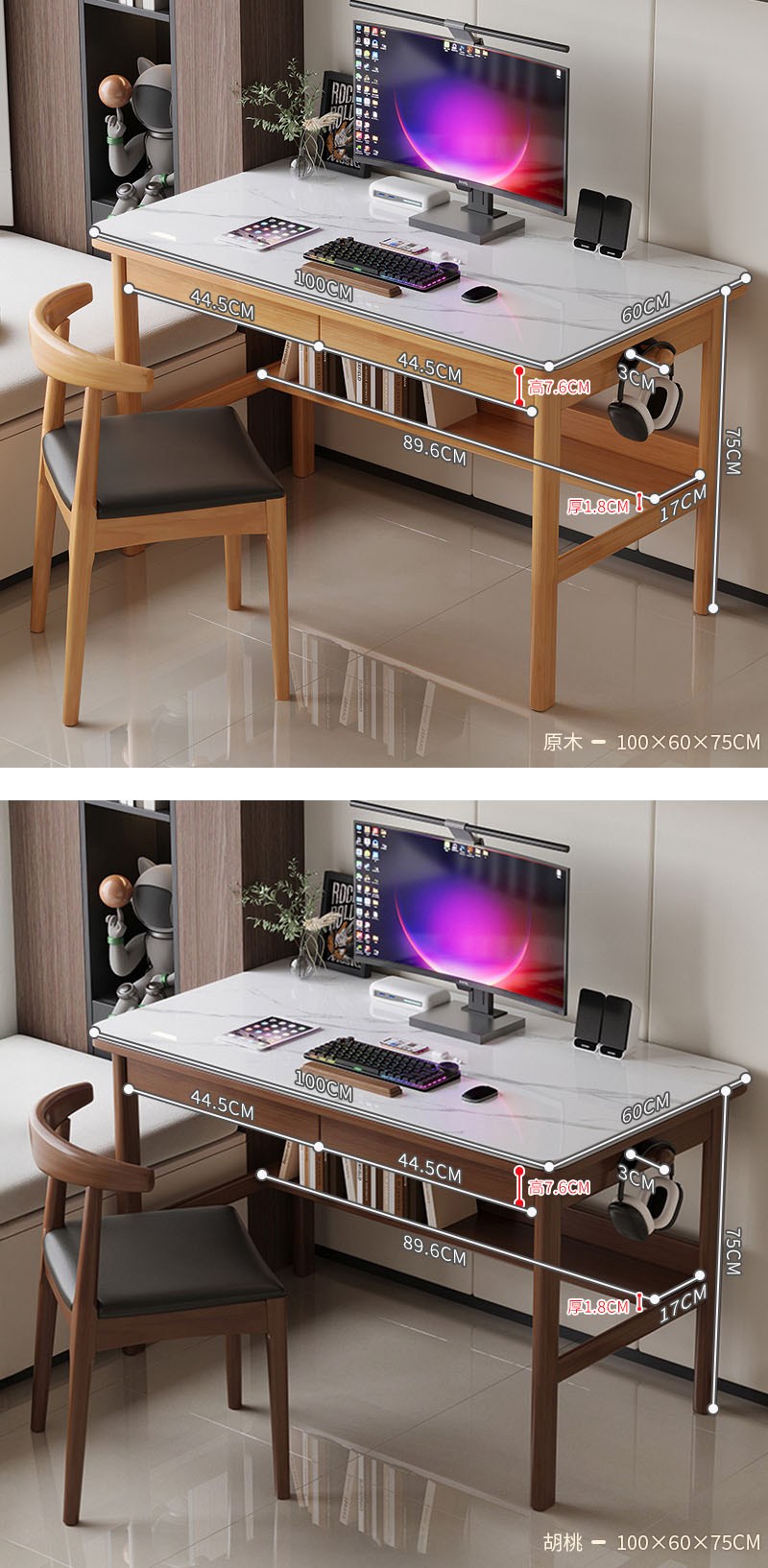 【HappyLife】實木岩板跳色書桌 100公分 Y11919胡桃