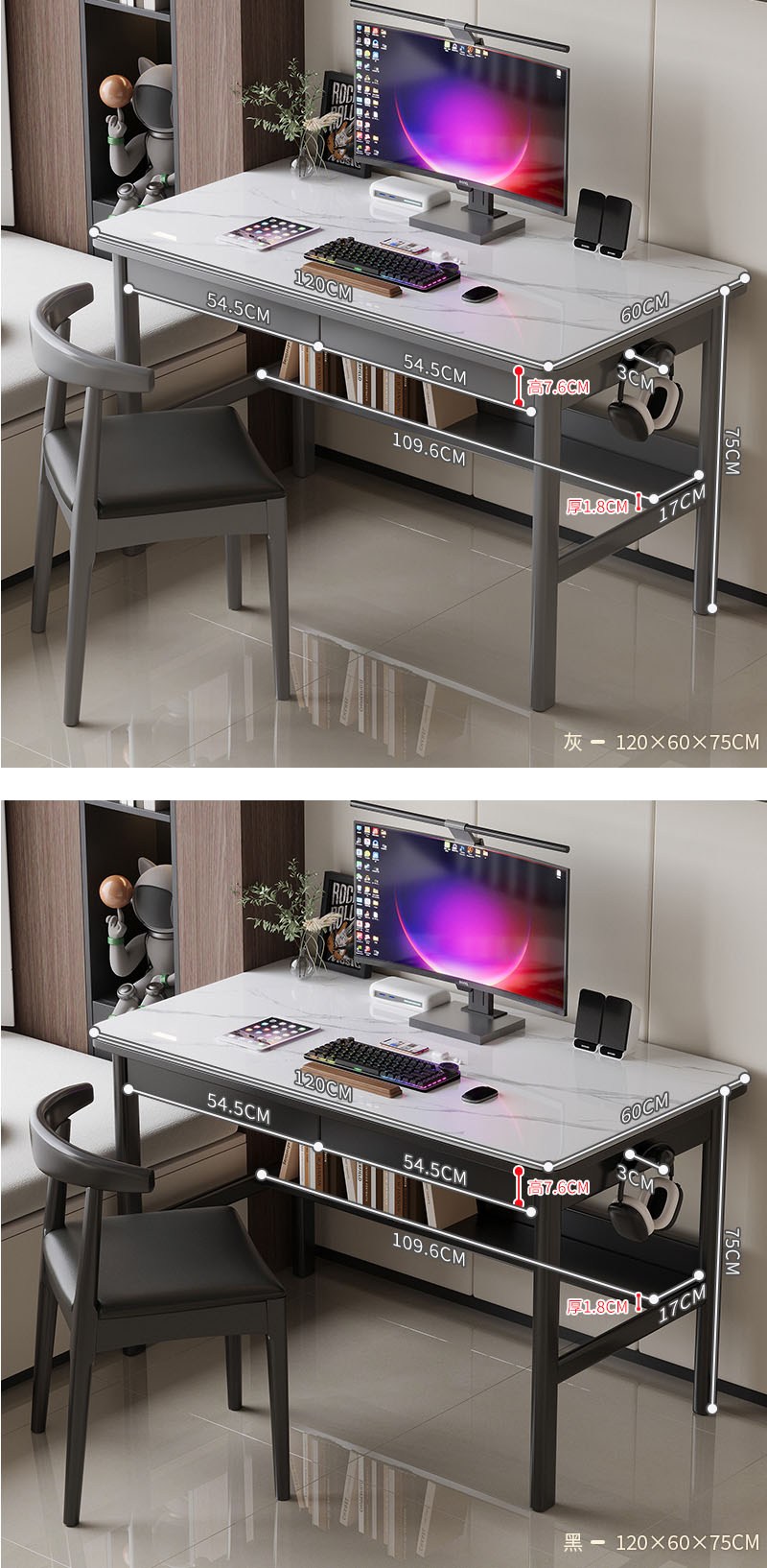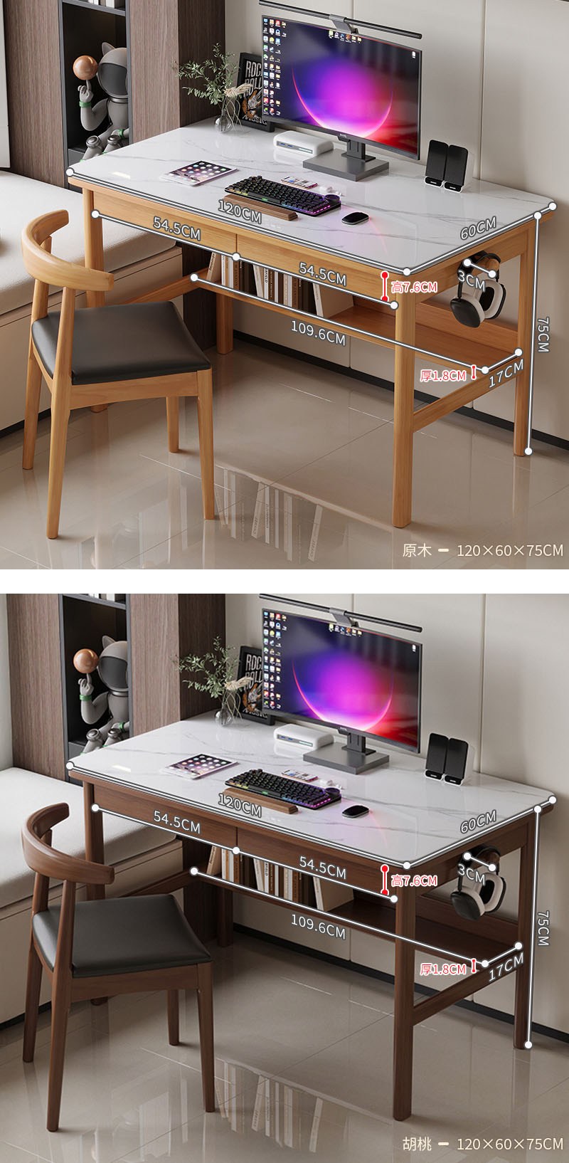 【HappyLife】實木岩板跳色書桌 120公分 Y11920胡桃
