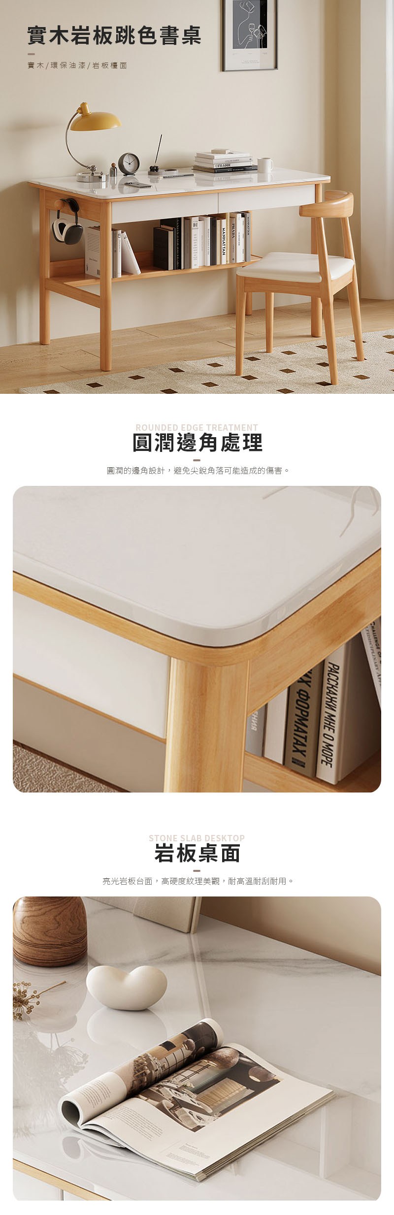 【HappyLife】實木岩板跳色書桌 80公分 Y11918原木