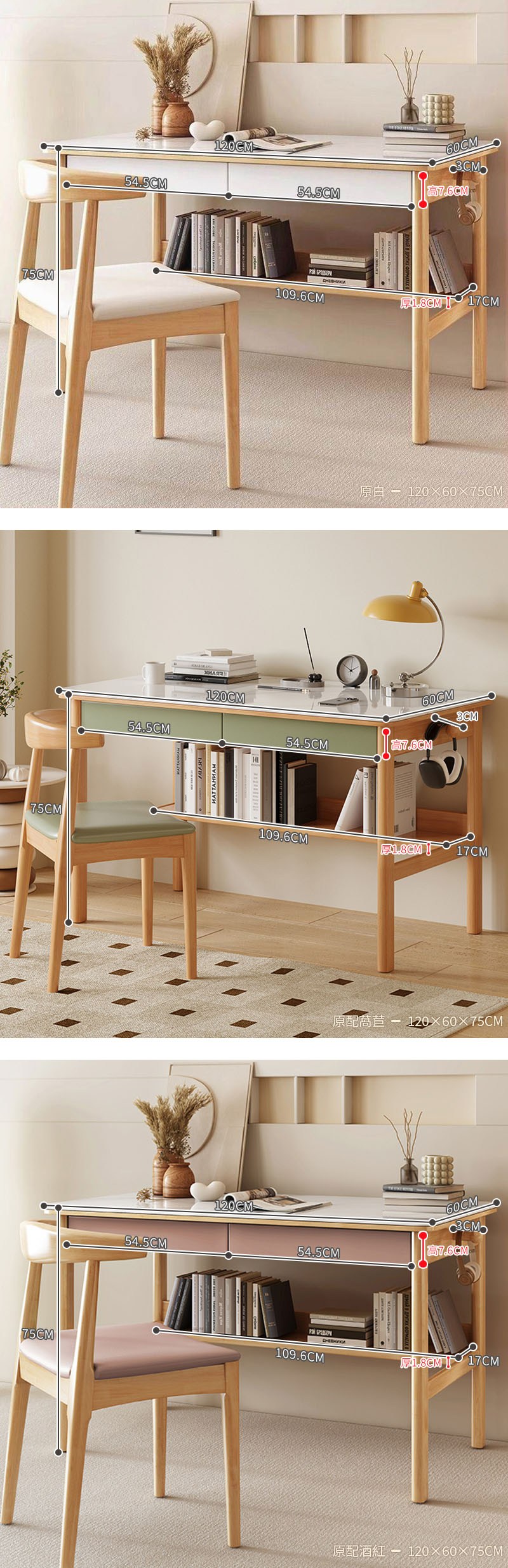 【HappyLife】實木岩板跳色書桌 80公分 Y11918原配萵苣